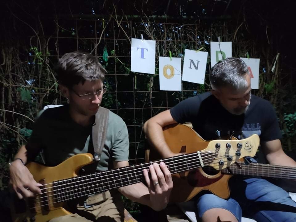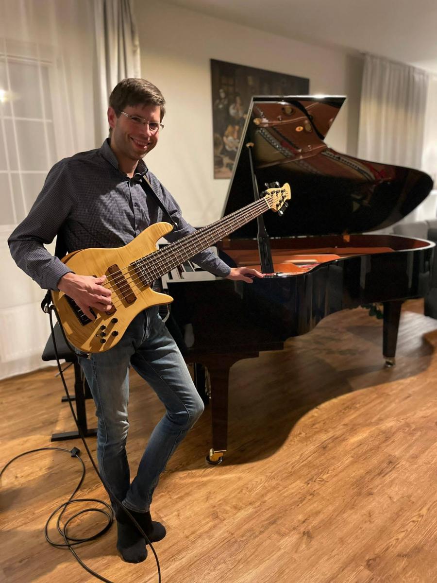 c) Všichni hudebníci v kapele, kromě bubeníka, mají nástroj se šesti strunami – proto jsem využil dopadů pandemie, kdy řada muzikantů kvůli nejasné budoucnosti začala rozprodávat svůj nástrojový inventář, a pořídil si od jednoho takového nešťastníka šestistrunný nástroj, abych lépe zapadl mezi „kotlíkáře“ a na koncertech nepřitahoval pozornost tím, že mám na podiu nekompletní nástroj s pouze pěti strunami.