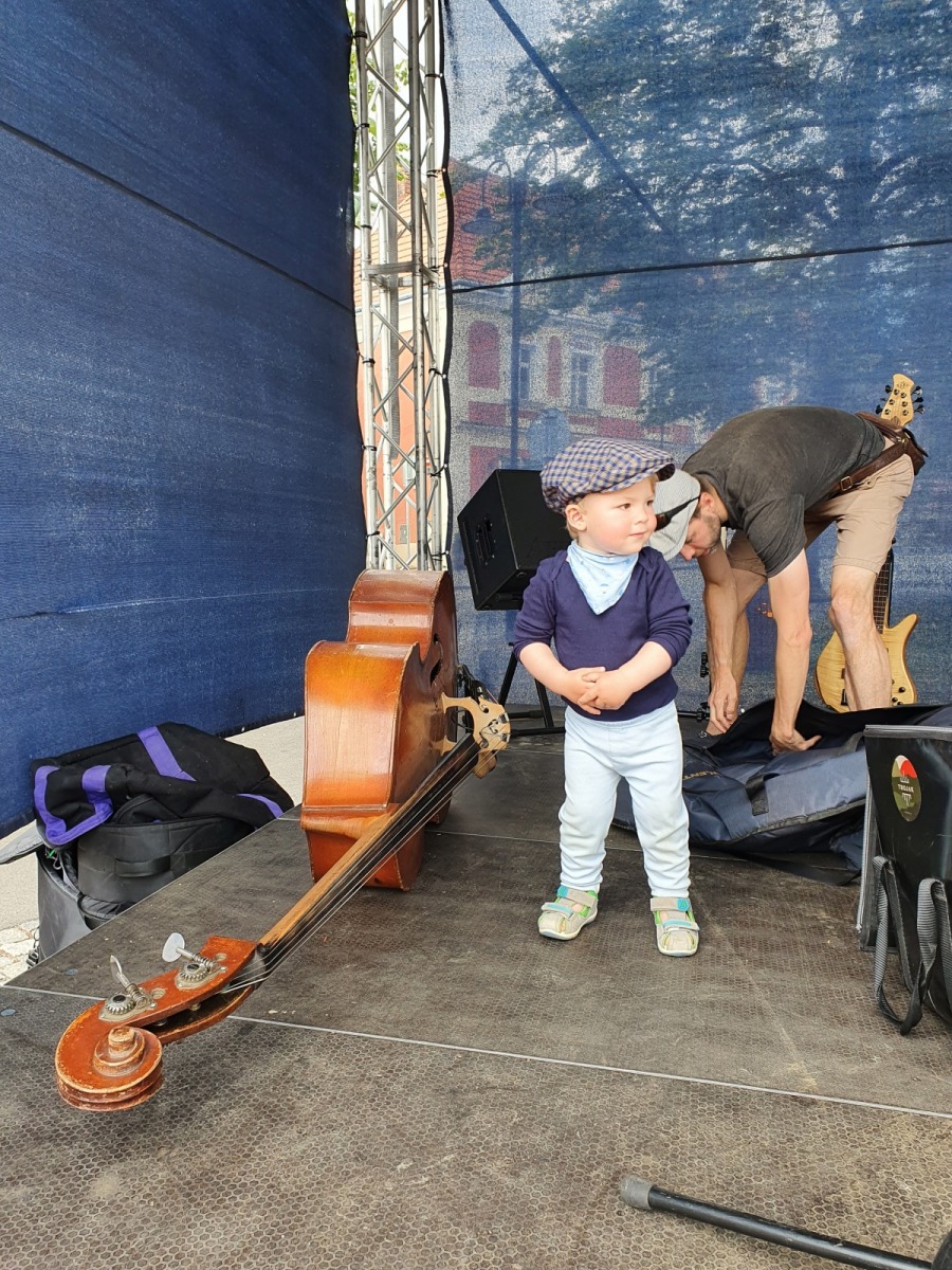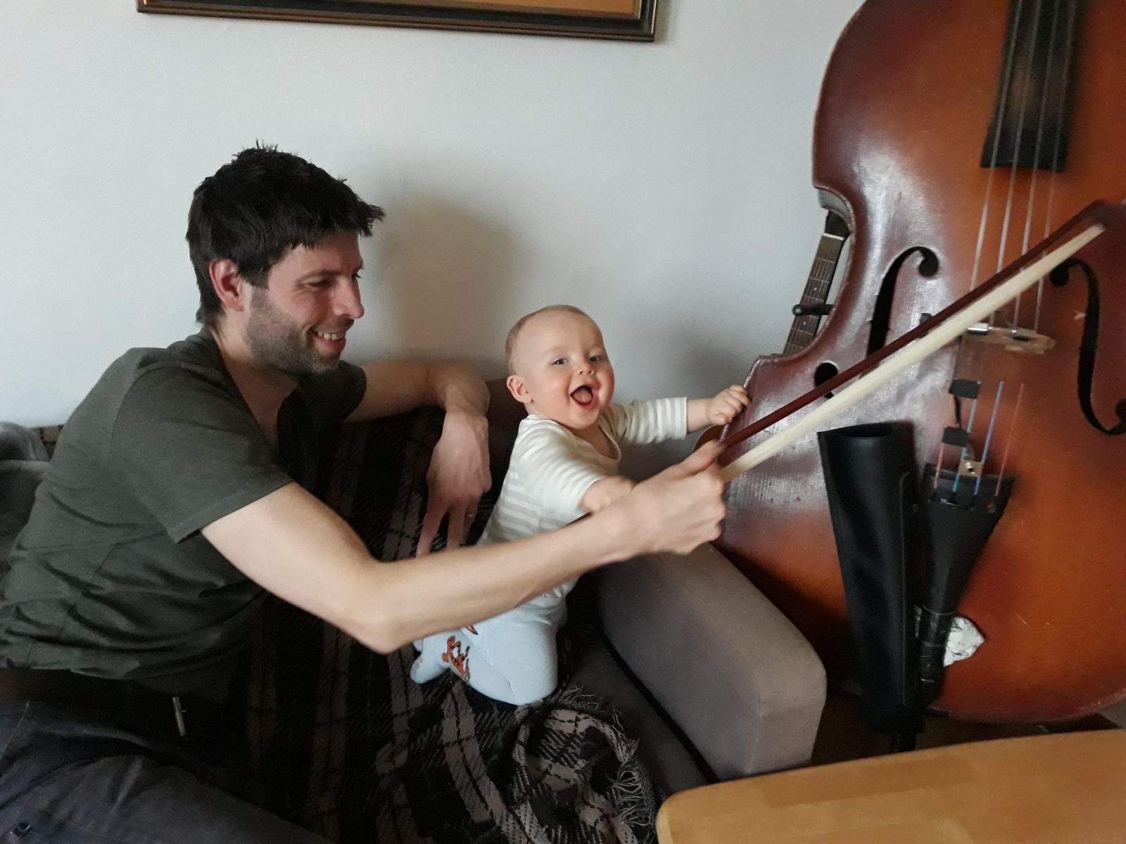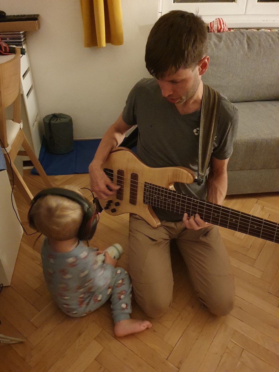 b) Výchova dětí za epidemického lockdownu rovněž otevře muzikantovi nebývalé obzory: např. pochopí, že cvičit na nástroj lze i doma v čase od jedenácté večerní do druhé hodiny po půlnoci, místo hraní na zkušebně, kterou měl před covidem cestou z práce, přicházel na ni před pátou podvečerní a opouštěl ji po deváté večerní a do které samozřejmě moc intenzivně nezajížděl, protože „neměl čas“ nebo „se mu zrovna nechtělo“. Rovněž si uvědomí, že kontrabas je sice hudební nástroj, ale nejlíp slouží za parádní silnici pro všechna možná autíčka, a že do efových otvorů ozvučné desky se nejlíp hážou hrací kostky, figurky nebo cokoliv, co lze otvory procpat dovnitř nástroje.